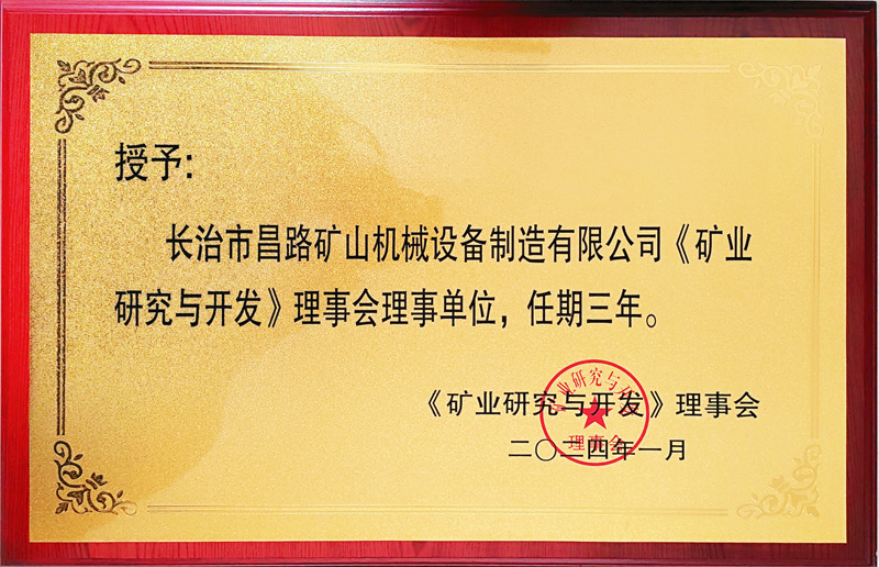 長沙礦山研究院授予我公司為《礦業(yè)與研究》理事會理事單位