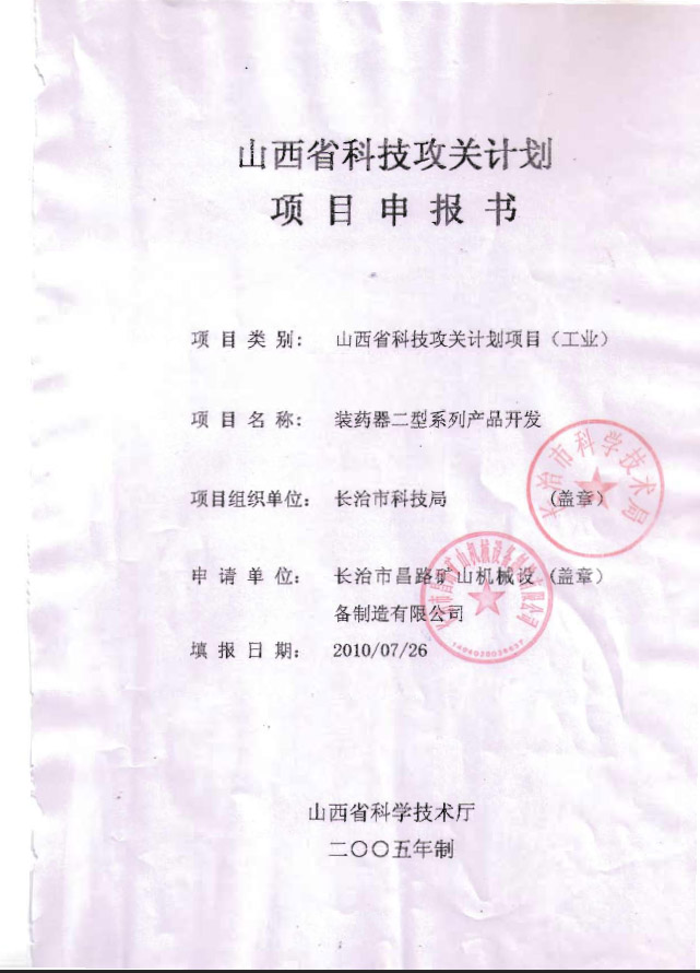 裝藥器二型開(kāi)發(fā)科技局申報(bào)